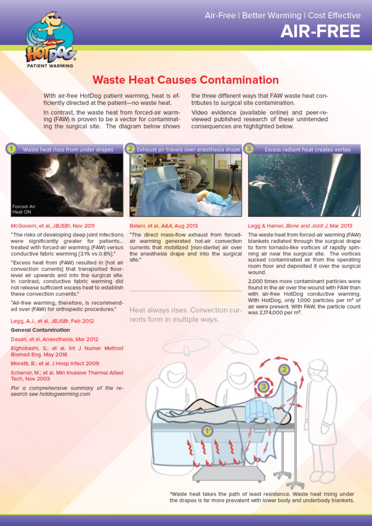 “Recent research has revealed that even if smoke evacuation is utilised, surgeons, anesthetists and the entire OR staff are still at risk of inhaling the viruses and carcinogens contained in surgical smoke. Why is this the case? The culprit is rising waste heat from commonly used hot-air patient-warming devices.”